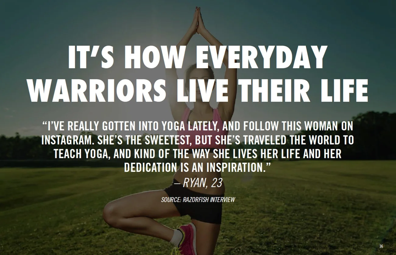 In other words, they wanted us to provide a fresh and current POV on the Nike North American Women, also called a Modern Girl of Fitness (MGOF).
